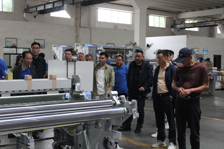 同時,來賓詳細參觀了天一紅旗紡機產品,尤其是自主創新研發的產品HQF001共軛凸輪打緯噴氣織機、噴水織機給予了高度認可。在李總的詳細講解下,商會一行深入生產一線,了解天一紅旗產品管控及質量標準,對精準管理和高效產能給予成分肯定。